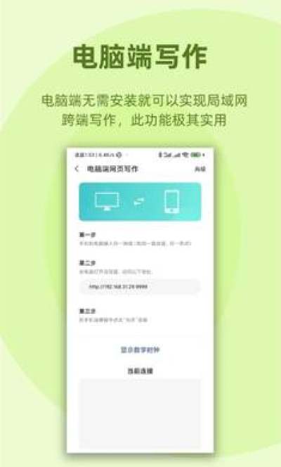 啄字鸟写作app是一款安卓手机写作助手软件,电脑端无需安装就可以实现局域网跨端写作,用户可以在手机以及电脑之间互相传输文字内容,海量的实用功能等你体验,一键智能开启创作,对软件感兴趣的话不妨点击下载试试!