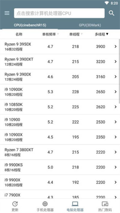 性能排行:支持查询手机和处理器的Geekbench单线程、多线程分数以及GFxbench曼哈顿图形帧数排行,让您轻松了解各款手机的性能表现。