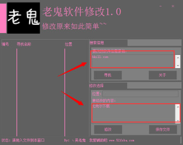 老鬼软件修改工具是一款非常好用的绿色免费的修改软件版权信息的软件,能够修改任意无壳程序的版权信息,但是对于加壳的程序只能去壳后才能修改,用户使用软件可以轻松将软件版权信息去掉,或修改成其它内容。