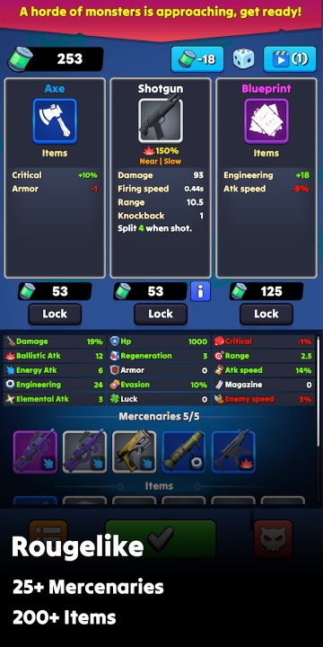 - 各种物品:超过 200 种独特的 roguelike 物品可协助战斗。充分利用雇佣兵和物品。