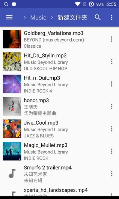 1、从“文件夹/专辑/艺术家/歌曲” 页面中长按列表项(启动”批量模式“同时选择一个列表项),点击选择多个列表项。