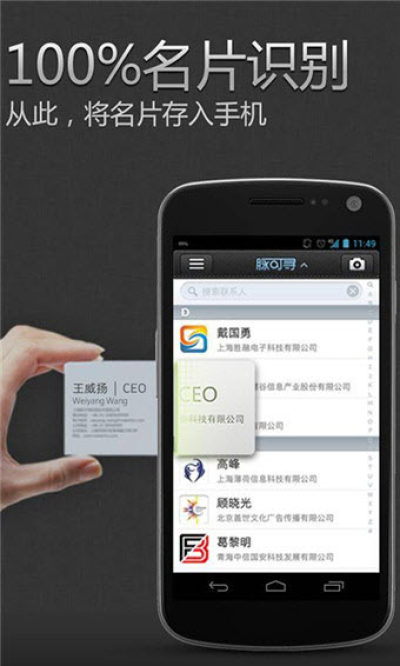 脉可寻名片是一款精致的名片管理软件,界面非常好看,该软件的识别率也非常高,扫描识别率接近100%。对于很多商务人士来说,手机里有一款名片识别工具是非常有必要的,如果没有这款软件可能会损失很多的客户,所以推荐大家使用脉可寻名片!