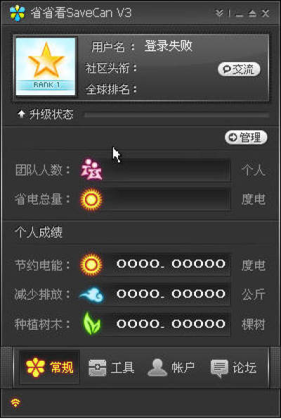 在全球变暖和空气污染等环境问题对人们生活影响越来越严重的情况下,使用首款中文公益环保软件省省看SaveCan就显得非常的有意义了,目的是自动通过帮助用户管理显示器,硬盘等耗电设备,节约用电延长电脑寿命。省省看把你节省下来的电能用数字表示出来,并折算成节约了多少树木和石油,让使用者认识到节电不但可以降低能耗,同时也在为生态环保做出贡献!