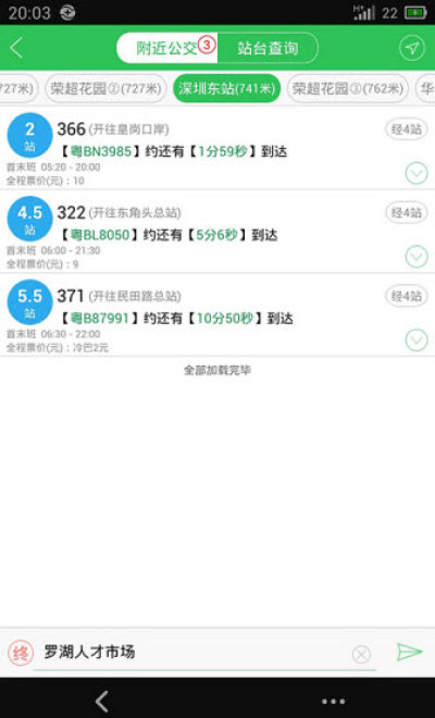 3.附近查询:自动定位周边最近的公交地铁站台信息,并显示哪辆车最快到达站台;