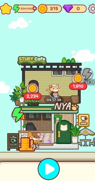 聘请受欢迎的经理,从可爱的女仆猫到时髦的说唱歌手猫,以增加咖啡馆的收入。解锁可爱又时尚的猫咪经理,赚取更多的钱,进一步扩大你的咖啡馆!