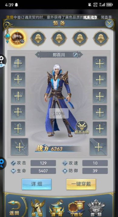 丰富的装备系统,一键换装方便操作,魂翼、橙装人人可得;