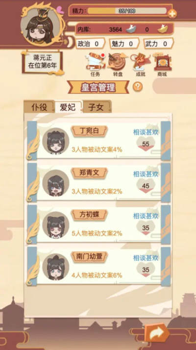 1.每一个游戏角色都有饱满的故事背景,玩家可以在里面体验到万岁爷的生活,还需要尽全力处理国家大事。
