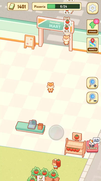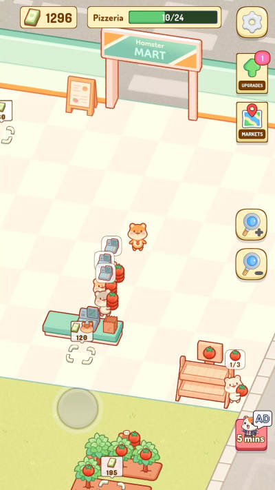 2、定制您的梦想集市:从不起眼的街角商店到庞大的超市帝国,设计和扩展您的集市。管理新鲜农产品角和坚果过道等区域,打造终极仓鼠天堂。