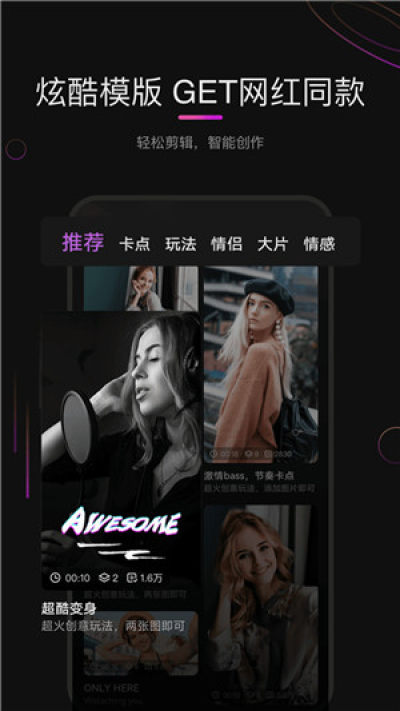 海量模板:提供多种酷炫、有趣的视频模板,覆盖不同场景和主题。用户只需选择模板并上传对应素材,即可一键生成高质量视频,降低创作门槛。