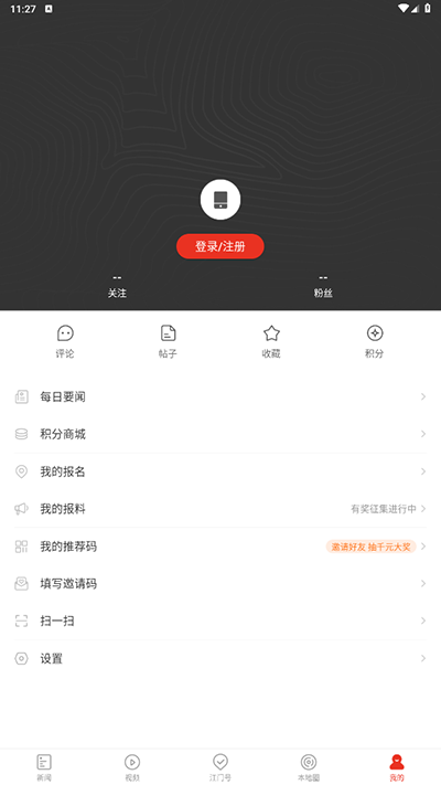 1、下载后打开进入直播江门app,在下方分类中点击【我的】版块;