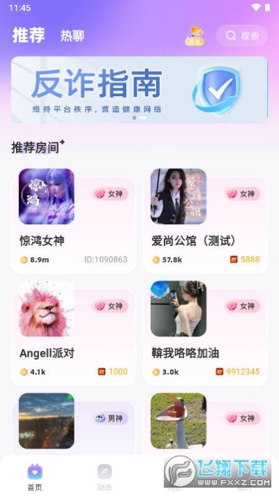 注册成功后,进入app首页,可以看到各种主题的房间列表。可以根据自己的兴趣爱好,选择一个或多个感兴趣的主题房间。