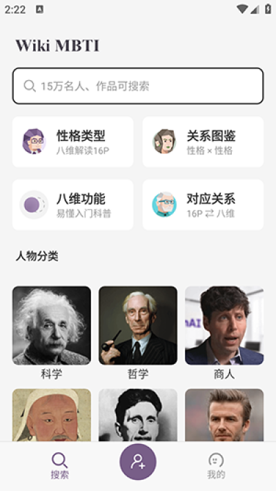 让你可以通过软件查询许多名人的MBTI分类,这样就能了解更多的人格分类信息;