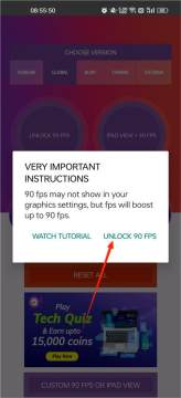 1) 要在运行低于 android 11 的设备上解锁 90 FPS,请允许权限并单击解锁 90 fps 按钮而已。