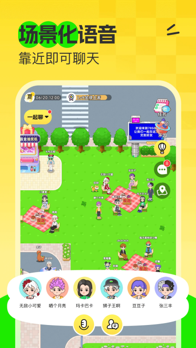 换装增添趣味,个性贴纸拉近距离,靠近即可开启语音聊天。