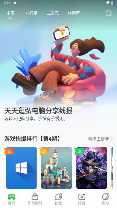 1、打开弘电脑app,在首页选择要玩的游戏,点击即可连接云电脑。