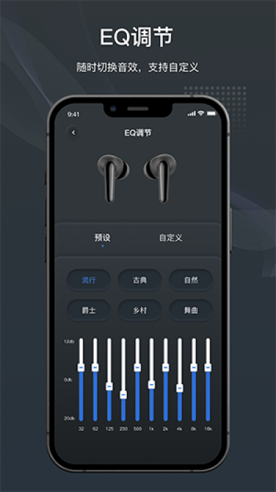 智能降噪与自定义音效:原声耳机APP不仅提供了先进的智能降噪技术,有效隔绝外界噪音,让用户沉浸在纯净的音乐世界中;还允许用户根据个人喜好自定义音效,无论是深沉的低音、清澈的高音还是均衡的中音,都能轻松调节,满足不同场景下的听觉需求。