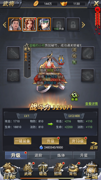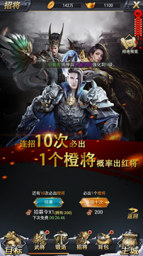 3、丰富的武将养成系统:游戏中拥有众多三国时期的著名武将,每位武将都有独特的技能和成长路径。玩家可以通过招募、培养武将,组建自己的最强阵容。同时,游戏还提供了多种养成方式,如装备升级、技能学习、武将进阶等,让玩家能够根据自己的喜好和策略来打造独一无二的武将团队。