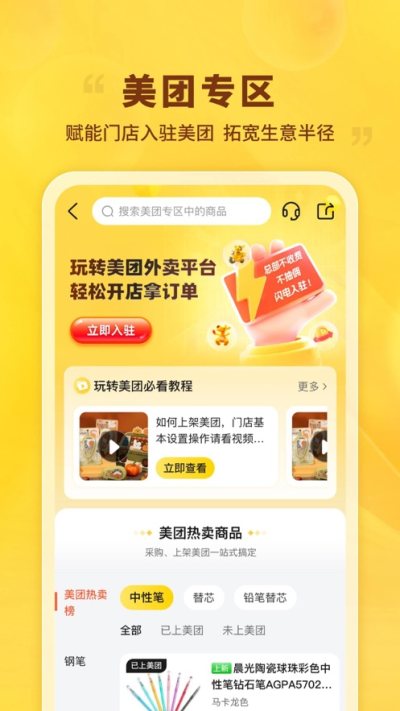 5、一键下单打通厂家库存与物流供应链,一键下单补单,坐享好货上门。 晨光联盟在手,文具生意无忧。