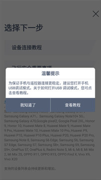 4、成功开启手机的USB调试模式后,再根据教程即可连接控制设备;