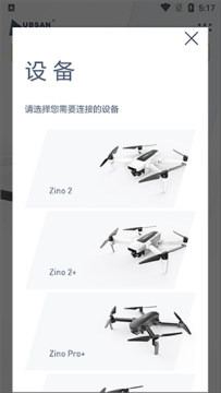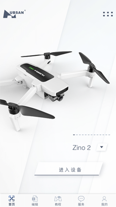 2、成功登录账号之后,在首页点击无人机,然后根据自己购买的无人机型号选择对应的设备(该软件目前支持的设备包括Zino 2,Zino 2+,Zino Pro+,Zino mini Pro,Zino mini SE,Zino mini,HUBSAN MINI,ACE SE以及HUBSAN ACE。);
