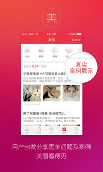 樱桃帮是一款美颜资讯软件,这里有权威准确的整形资讯,健康安全的整形优惠,真实贴切的真人案例,以及方便快捷的整形、美容、护肤交流平台,是所有爱美人士的最佳去处,想要让自己变得越年轻、越漂亮的朋友快加入进来吧!