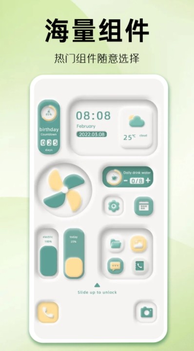 3、趣味组件:木鱼一敲,烦恼全消,夏日小风扇,快给桌面降降温。