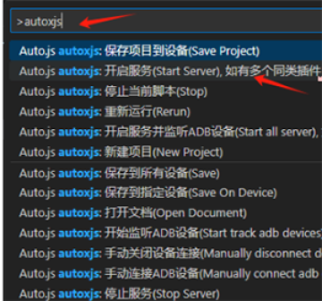 2、电脑vscode安装Auto.js-Autox.js-VSCodeExt插件,在vscode开启autoxjs服务,快捷键Ctrl+Shift+P打开命令搜索窗口,输入autoxjs,选择开启服务。出现ip和商品号即为开启成功,ip和端口号用于连接。
