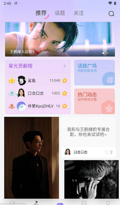 4、在社区内,关注你的爱豆的官方账号或相关粉丝账号。