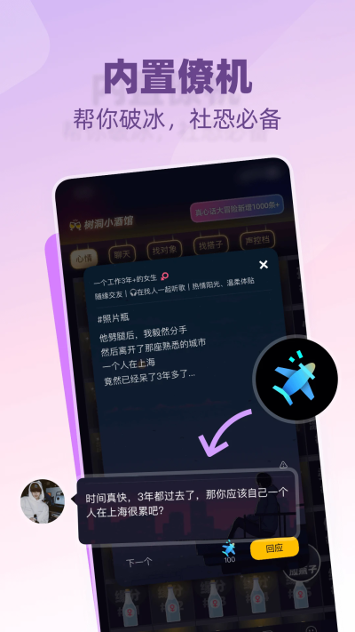 一款集合了树洞倾诉、话术教学与分类的多功能应用。在树洞功能中,用户可以分享心事,释放情感压力,找到共鸣与支持。