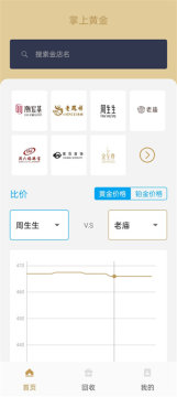 1、打开掌上黄金app,进入首页,可以直接搜索店名,了解价格的涨幅。