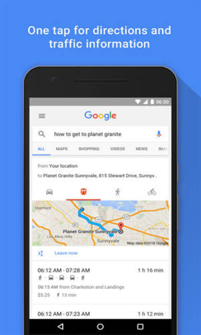 Android手机的Google搜索应用程序可以为你的手机提供最快的网络搜索体验。 官方提供的这款搜索应用程序可以搜索相关的网页内容和手机本地内容,包括应用程序、浏览器书签和历史记录、联系人姓名、音乐等内容。 只需要将搜索框以桌面插件的方式放在主页上,就可以输入关键词之后快速获取网上搜索出的智能建议结果,Google搜索也会不断学习哪些是用户的常用习惯结果从而变得更快。