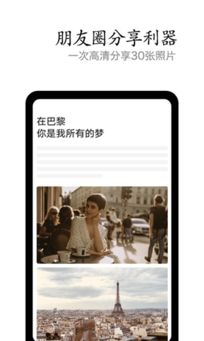 多图编辑快捷: 支持九图同步编辑功能,无论是家庭聚会还是旅行留念,都能轻松实现批量处理,优化后直接分享至社交平台,让美好瞬间迅速传播。