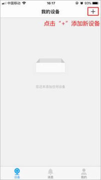 3、登录APP后,点击设备主界面右上角【+】,扫描录像机背面或包装盒上的二维码(也可以扫描录像机界面【设置 > 云服务】中右边的二维码):