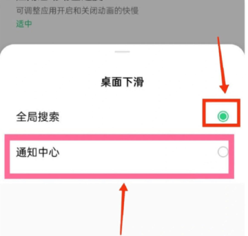 在页面中找到“桌面下滑”选项,并将其勾选为“通知中心”,即可完成设置。