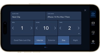 输入片段信息,包括:场记板名称、镜头数据、卷号、场景、镜次、将上个片段标为好镜次、内部/外部、白天/夜晚、制作名称、摄影机ID、导演、摄影师。