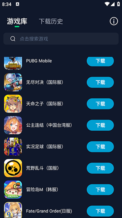 2、如果首页进去没有你需要下载的游戏,可以点击下搜索功能,进行搜索你需要的游戏,如搜索pubg;
