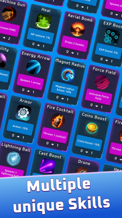电击,火焰,双持,随机射击,多维可选特殊天赋技能的无限组合,每次通关,你都会获得新的游戏体验。华丽的特效和独特的技能设计,带来震撼的全新感官体验。
