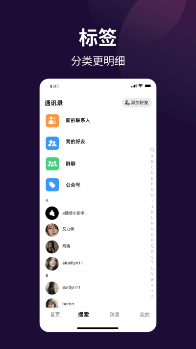随信app是一款安卓手机社交互动软件,软件中有着海量的实用功能等你体验,用户可以一键添加好友,在线结识更多好友开启聊天,可以通过语音,视频,文字感受沉浸式的社交体验。对软件感兴趣的话不妨点击下载试试!