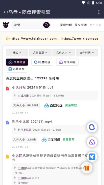 筛选功能:在搜索资源时,小马盘提供了多种筛选条件,如资源类型、文件大小、文件时间等,帮助用户快速定位到目标资源。
