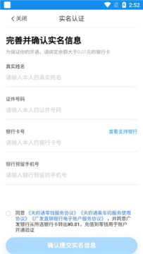 4、如果你选的是账户认证,那需要在实名认证栏中输入下图所示信息即可开通乘车二维码。