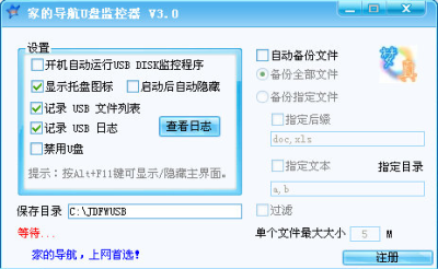 家的导航U盘监控器是一款非常好用的u盘监控器,可以支持监控u盘的插入和拔出,并且后台自动运行,自动备份u盘的文件。再也不怕因为u盘因为病毒而丢失文件了!