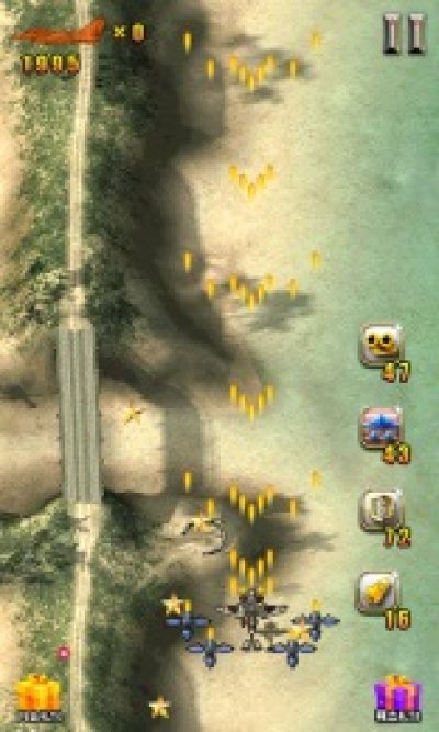- 游戏版本中共有三款飞机供玩家选择,每架飞机除了在造型上有所不同之外,还有自己的相关特性以及特有的技能,发射子弹的类型也都完全不一样。