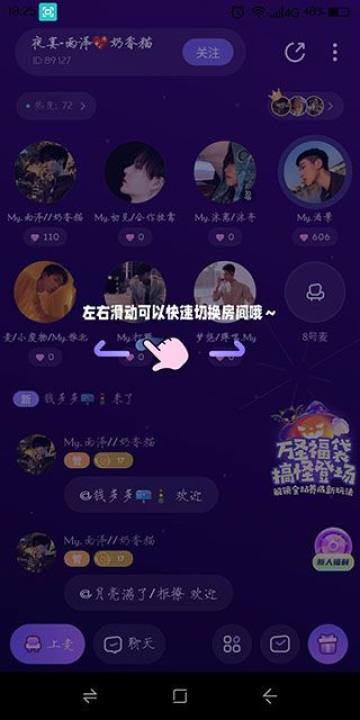 5、操作模式跟抖音差不多,左右滑动可以快速切换房间哟