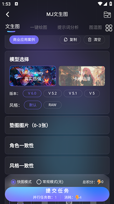 3、如果用户想要更快速地完成创作,可以选择AI绘画模式,通过输入关键词来生成符合设定的画作。