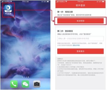 在页面第二步输入框中输入刚刚发送短信的手机号码,点击“登录激活”按钮,系统会自动识别校验。成功后,进入APP首页,登录激活成功。