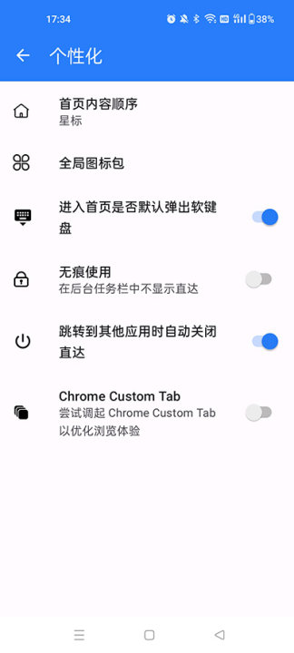 你想要的,都在直达!直达提供了强大的搜索功能,规则云端更新,无需繁琐的手动添加。在直达中直接键入关键词,可以搜索本地应用,各种快捷方式,联系人信息。另外,你还可以调用丰富的第三方搜索引擎,完成梦幻联动!