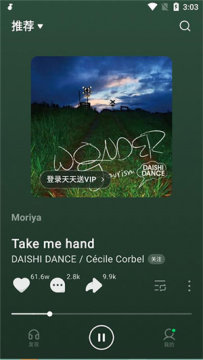 2、音乐的切换则是和抖音短视频一样,采用手动上下滑屏的方式,这也是目前视频音乐App主要的歌曲切换方式。