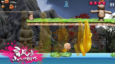 3、游戏画面点击屏幕即可控制小和尚跳跃,连续点击控制跳跃更高;