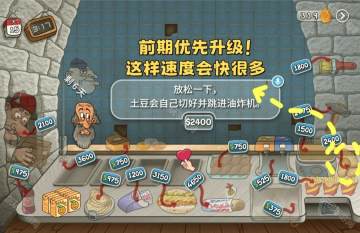 13、放松一下,土豆会自己切好并跳进油炸机。前期优先升级!这样速度会快很多。