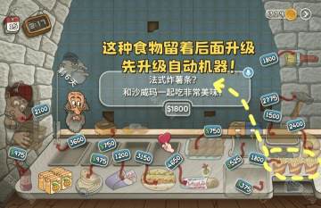2、推荐玩家优先升级自动烤肉机、自动包装机、自动削土豆、自动金币。
